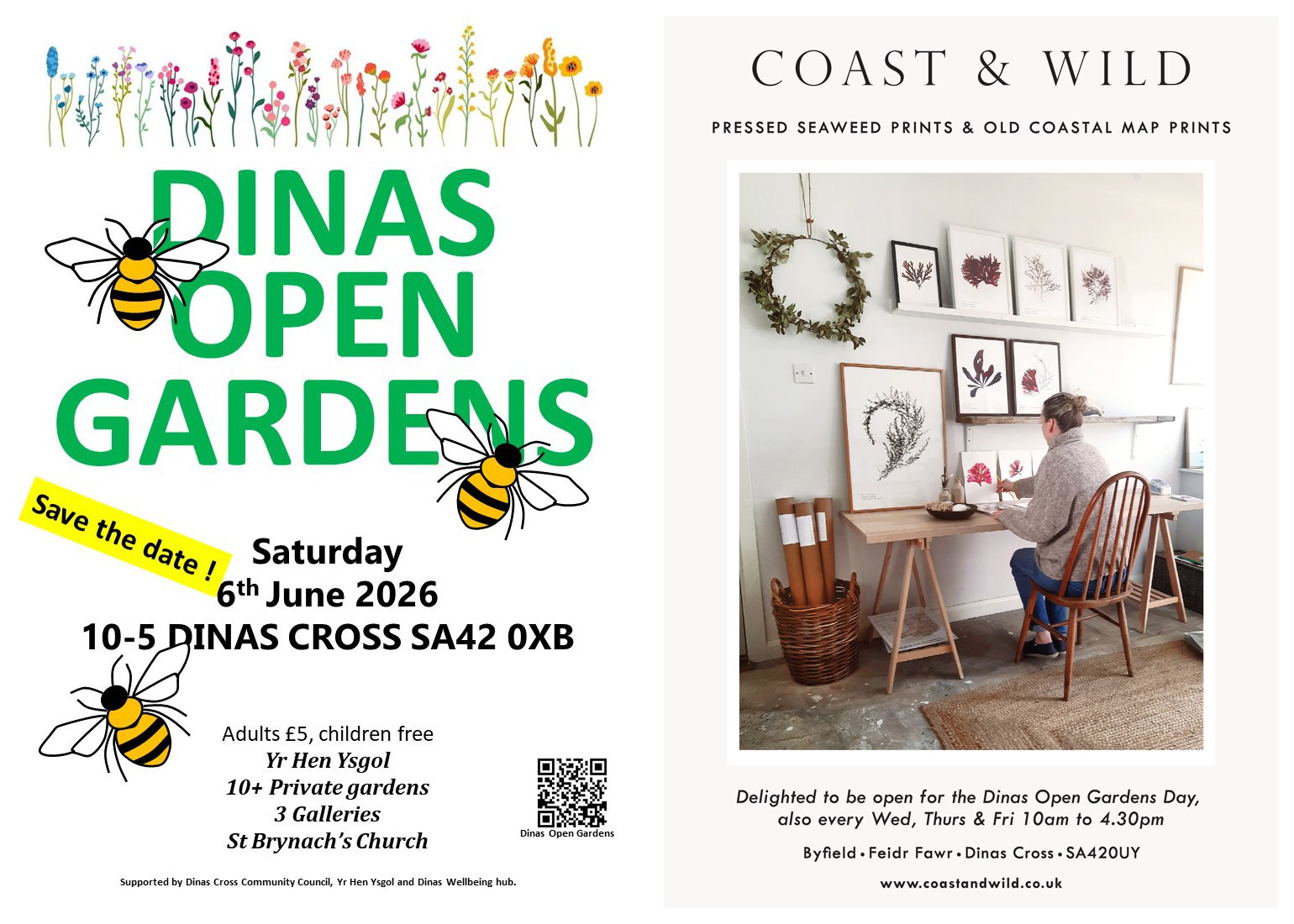 We are so delighted to have been invited to open our little seaweed studio for the Dinas Cross Open Gardens on June 6th 2026.